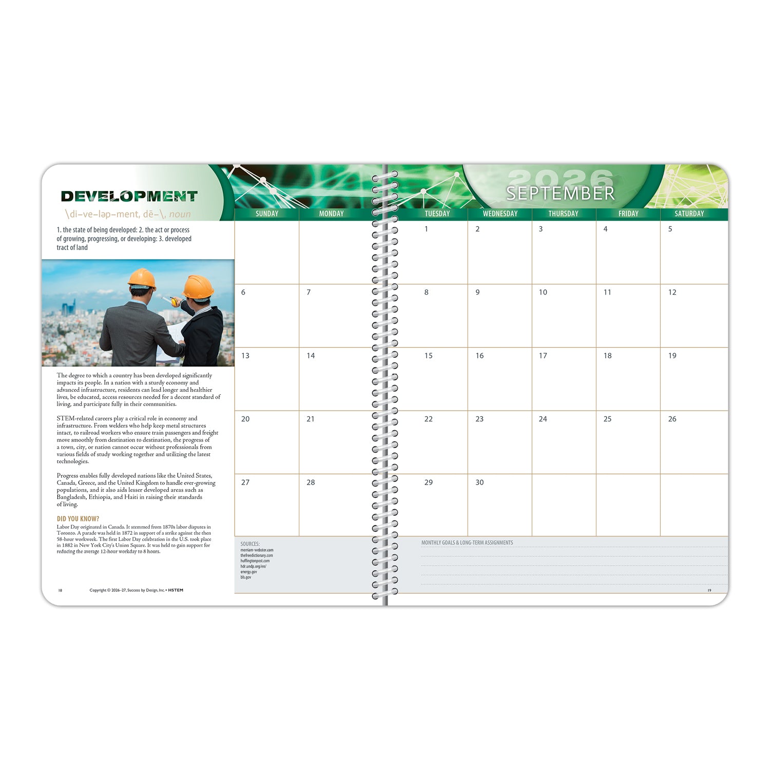 This planner emphasizes a different STEM-related topic every month of the school year. Each week features a STEM-related career and PROVIDES FACTS, STATISTICS, and OUTLOOKS related to that career—a career that could have a POSITIVE IMPACT on both their own lives and the world at large.