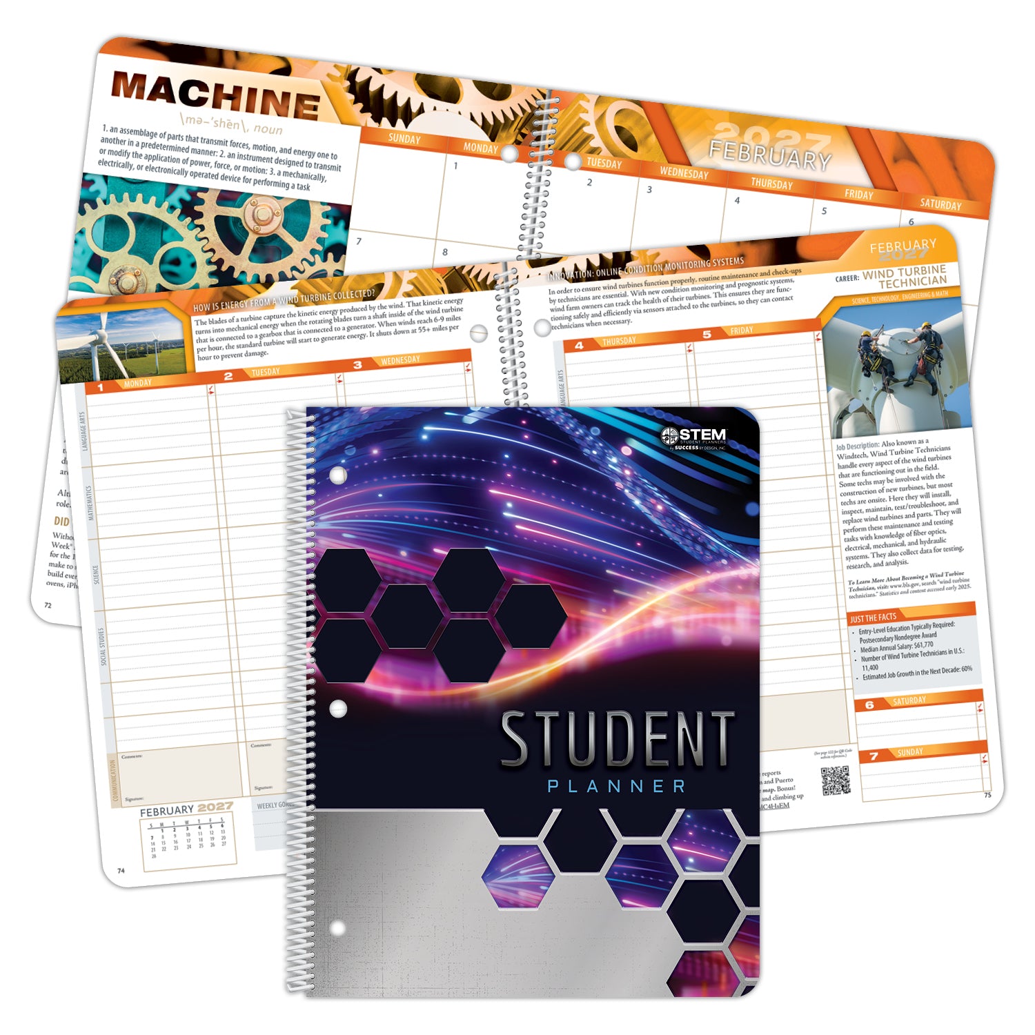 Science, technology, engineering and math permeate our world. They are integral to our daily lives — a fact often taken for granted. Each has led to life-changing innovations, and knowledge of one or more of these four subjects is increasingly necessary for many jobs. Choose this planner to open students' minds to the importance of STEM.